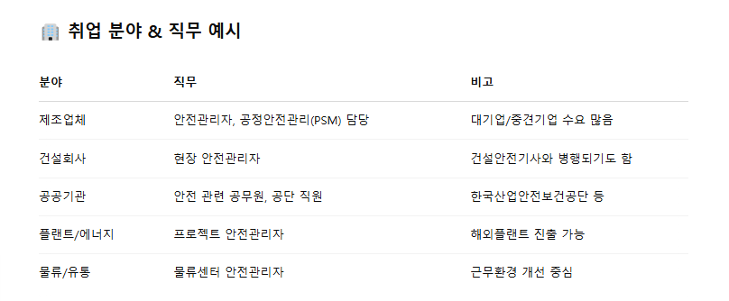 다른 자격증 (건설안전, 산업위생, 위험물 등)도 추가하면 이직이나 승진에 유리합니다.